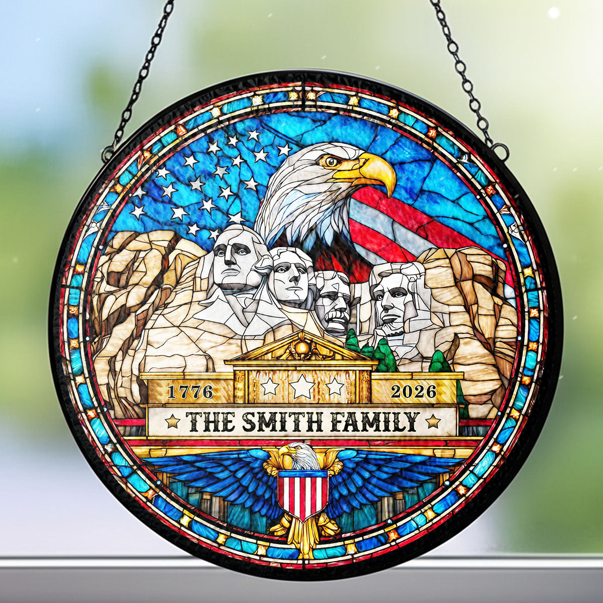 250 Years American Eagle - Personalized Stained Glass Window Hanging Suncatcher - Gift For Patriotic HN02